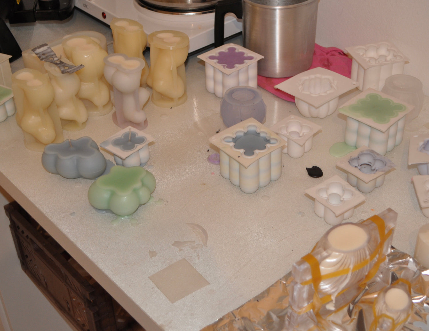 •Um die Wachsreste von der Unterlage zu entfernen, halte die Unterseite der Form unter heißes Wasser bis du den Wachsblock von der Unterlage abtrennen kannst.